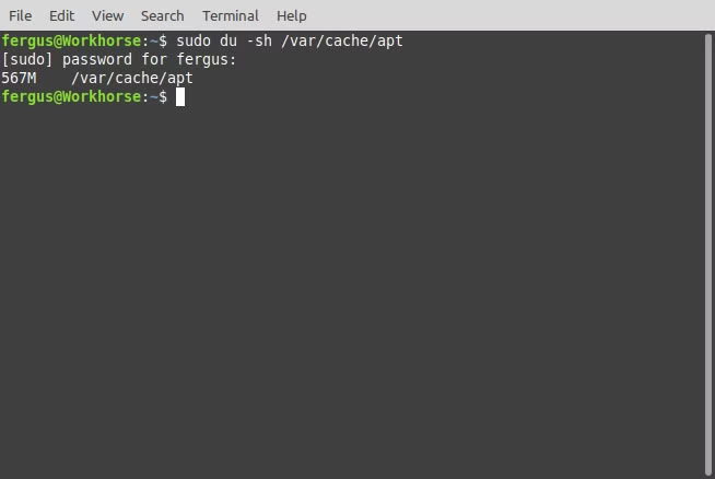 sudo du -sh /var/cache/apt To clear the cache and recover space: